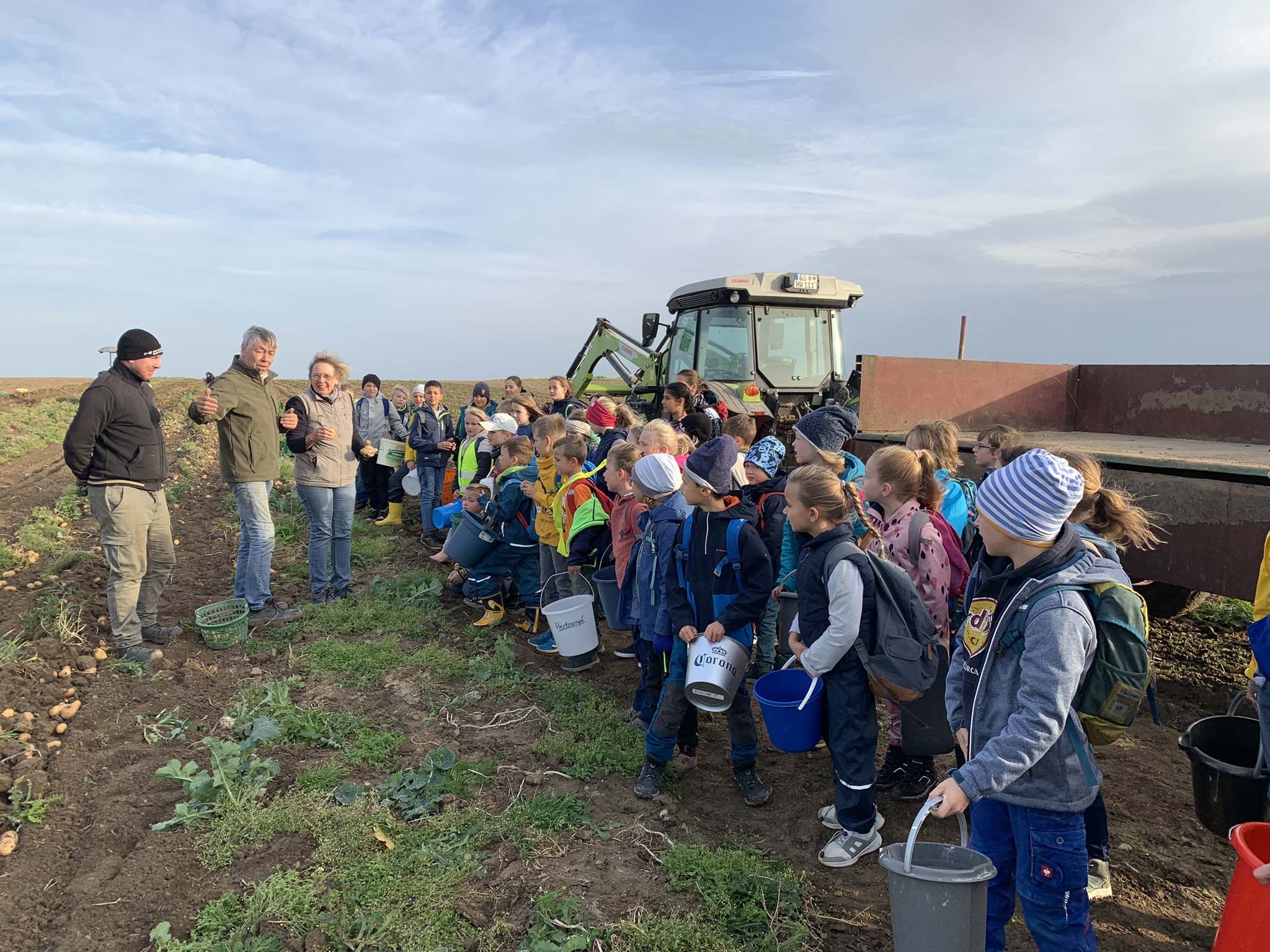 Die große Anhängerladung wurde von Familie Wedde an die Tafel gespendet und jeder der kleinen Erntehelfer ging mit einer Tüte Kartoffeln, wie sie frischer nicht sein können, nach Hause.