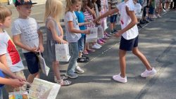 - Bei strahlendem Sonnenschein versammelten sich die ersten und zweiten Klassen der Hauptstelle der GHS am Freitag, 6.9.2024, in der 4. Stunde auf dem Schulhof. Die Zweitklässler/innen übergaben die liebevoll bemalten und von der Bücherheimat mit Büchern und anderen Kleinigkeiten gefüllten Lesetüten an ihre neuen Mitschüler/innen aus den ersten Klassen. Die Klassenlehrerinnen der zweiten Klassen (Frau Tomaschek und Frau Schneider) wünschten allen ganz viel Spaß beim Lesenlernen. Diesen werden die Erstklässler/innen mit diesem tollen Startpaket sicher haben.