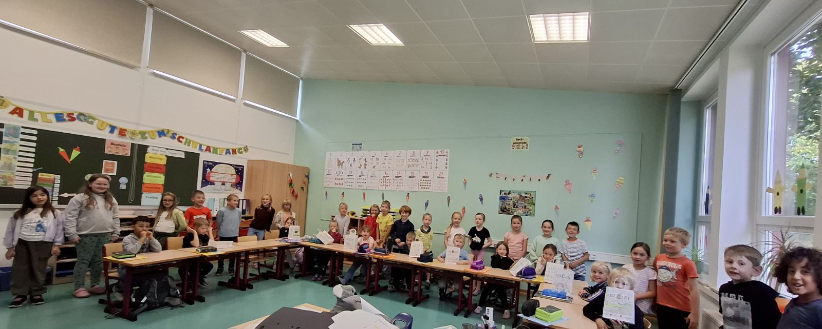 Lesetüten für unsere ErstklässlerInnen Am 29.08.2025 überraschten die jetzigen ZweitklässlerInnen unsere SchulanfängerInnen mit Lesetüten von der Buchhandlung “Bücherheimat” aus Bad Harzburg. Jede Lesetüte gestalteten die Kinder der zweiten Klasse liebevoll und individuell. Die Tüten wurden mit einem Geschichtenbuch von Paul Maar , einem Türschild, einem Leseschieber sowie einem Pixibuch ausgestattet. Diese wurden dann auch gleich von allen gemeinsam angeschaut und von den ZweitklässlerInnen vorgelesen. Die ErstklässlerInnen freuten sich sehr über das Geschenk und bedanken sich recht herzlich bei der Buchhandlung “Bücherheimat” sowie bei allen MitschülerInnen der zweiten Klassen für die liebevoll gestalteten Lesetüten.