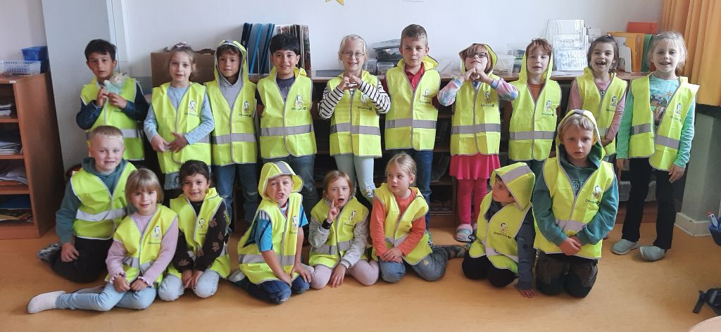 Damit alle Schulkinder auf ihrem Schulweg sicher unterwegs sind, nehmen wir am Schulwegtraining “gelbe Füße” in Kooperation mit der Polizei teil. Zudem haben alle Schulanfänger eine gelbe Warnweste vom ADAC bekommen, um auf ihrem Schulweg gut sichtbar zu sein.